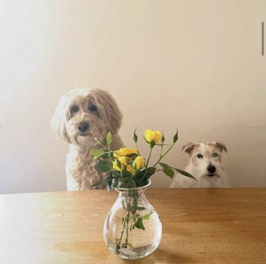 1番に咲いた黄色い薔薇をカットして持たせてくださいました。