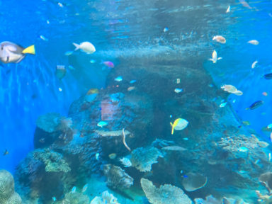 『海の宝石箱』と書かれたこの水槽は、綺麗な色のおさかながスイスイ泳いでいました。