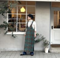12月に直営店でお渡しできるおまけレシピ『裾ギャザーのVネックジャンパースカート』の裾ギャザーなしバージョンを作りました。