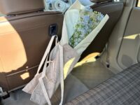 花束をサコッシュのように斜めがけして持ち歩くと、日傘をさしたり、手を繋ぐこともできて快適です。