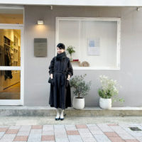 ハーブのラップコートは、着丈が長くお袖もゆったりしたデザインなので中に着るデザインも選ばず、ワンピースでもパンツでもしっくり落ち着きます。