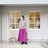 C&S フレンチコーデュロイのグレープソーダでギャザースカートを作りました。