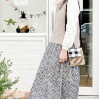 リバティプリントタナローン Glenjade(グレンジェイド) で作った『タックのロングスカート(おまけレシピ)』は、マキシ丈にアレンジしました。