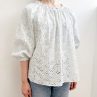 新刊『CHECK&STRIPE her closet あのひとの装い』(主婦と生活社)から、ラグラン袖のワンピースの丈を短くアレンジし、ブラウスを作りました。