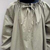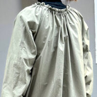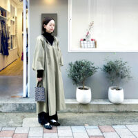 春夏は一枚で、秋冬はニットに重ねて着ています。目のぐっと詰まった生地なので、ニットと合わせて着るとあたたかいです。