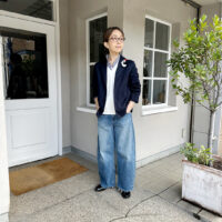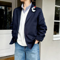 肌寒い春先に肉厚なボーイフレンドチノクロスのジャケットはあたたかく、sunny days stripeのシャツはニットの下などに着れば一年中着回しができます。