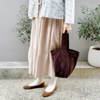 リバティプリントのCarolynは、絣風の柄がオリエンタルなデザインに合いそうと思いセレクトしてみました。